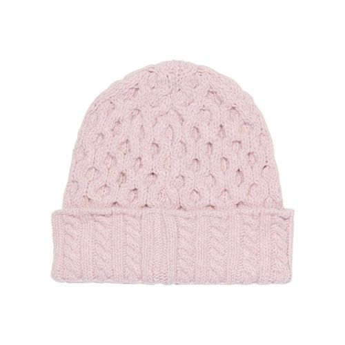 100% Merino Wool Irish Aran Hat, Pale Pink