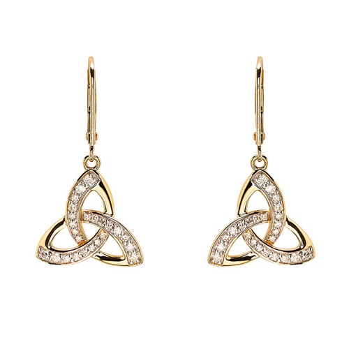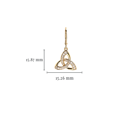 The 14K Gold Celtic Trinity Knot Drop Earrings with Lab Diamond are a refined blend of