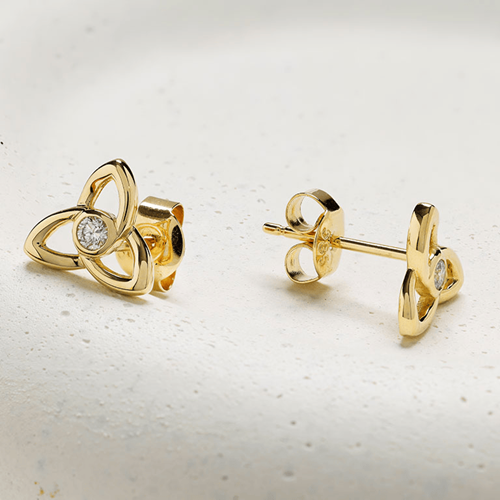 timeless symbolism. Featuring the iconic Celtic Trinity Knot, these elegant studs represent the