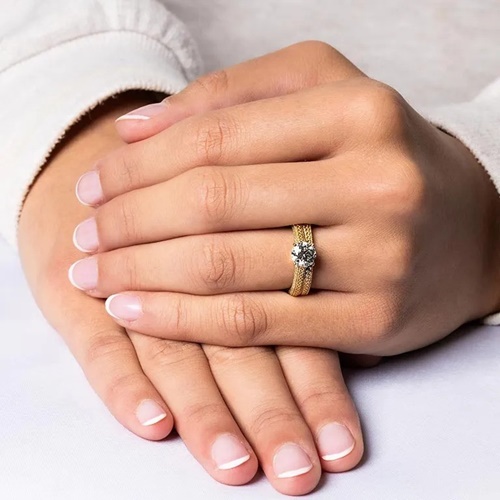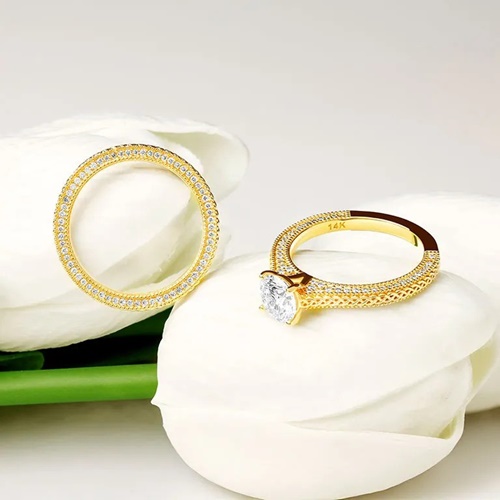 ancient symbol of eternal unions. Yellow gold suggests precious bonds. White diamonds signify