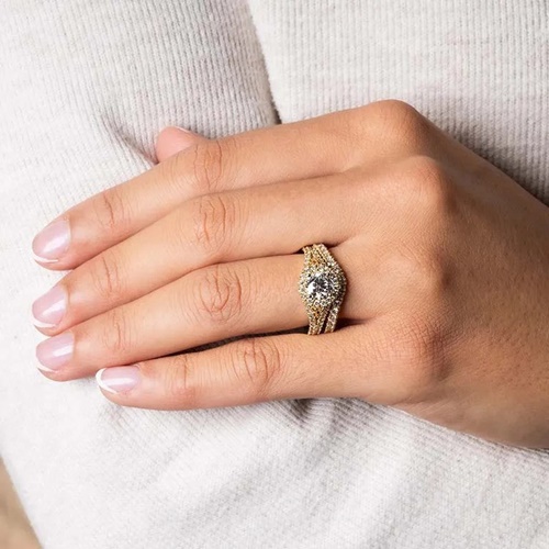 forever. Yellow gold reveals precious bonds. Lab-grown diamonds indicate the wearer’s ecological