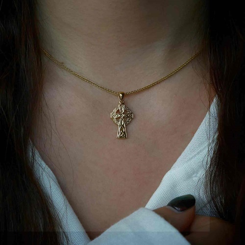 14K Yellow Gold Vermeil Double Sided Celtic Cross- Small