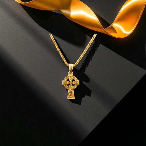 A traditional celtic cross of 14K gold vermeil