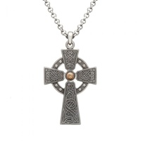 Antiqued Silver and 18K Gold Beaded Large Celtic Warrior Cross
