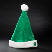 Irish Santa Hat - Plush Santa Hat with Shamrock on Cuff, Green