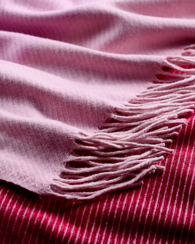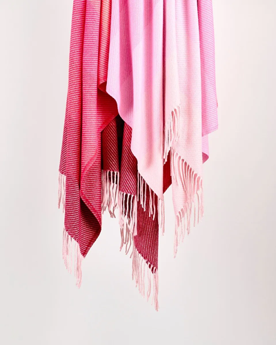 From delicate blush to rich rose, this lustrous cashmere blend throw is woven at the Avoca Mill