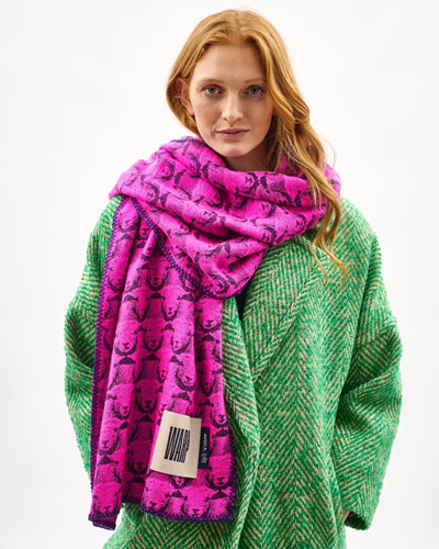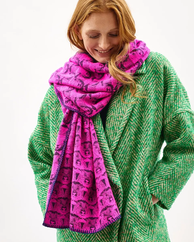 Bold threads for an evolving flock. This scarf features woven in neon pink to mark every year of