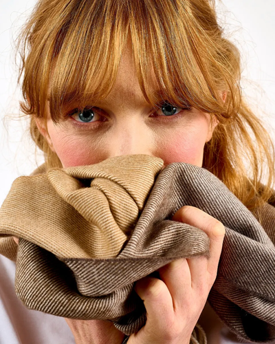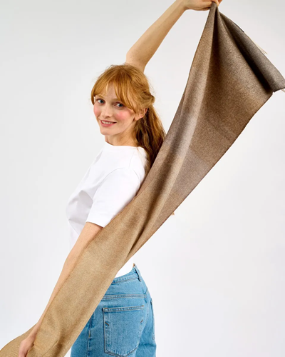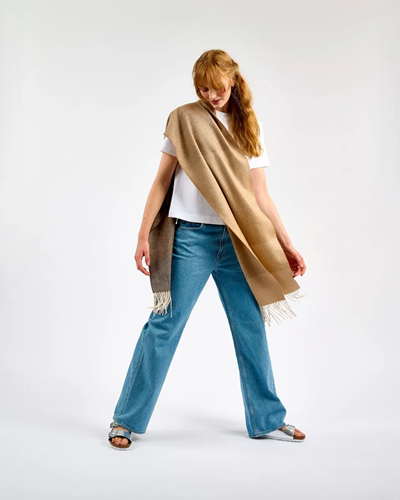 Inspired by the natural beauty of Ireland’s coastline, the Ombre Camel Wide Merino Scarf