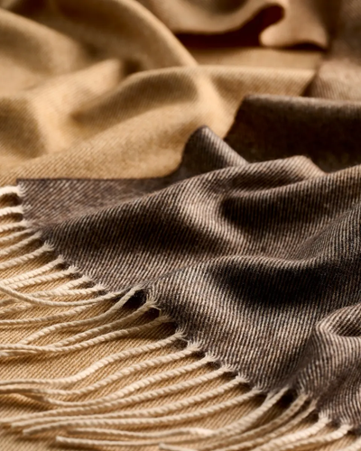 luxuriously soft merino, its ombre gradient and twill weave add depth and texture. A timeless,