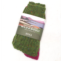 Avoca Handweavers Wild and Wooly Women's Donegal Socks, Green/Red