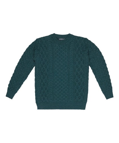 features the traditional Aran honeycomb and lattice cables. The Blasket style sweater was