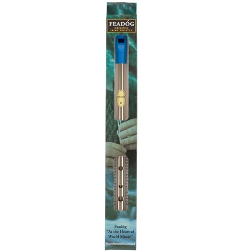 This stylish Presentation Pack contains a Feadóg Nickel Whistle Blue Top in the Key of “D”, with