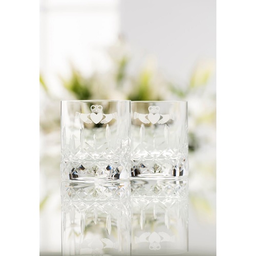 Galway Irish Crystal Double Old Fashioned Claddagh Whiskey Glass Pair