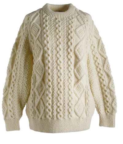 The Aran Hand Knit comes form the age old traditions of the wives and daughters of fishermen knitting rugged garments for their husbands and families. The basic stitches of moss, tree of life, blackbery or trinity were combined to relate sea, land and religious beliefs in a complex pattern unique to each family.