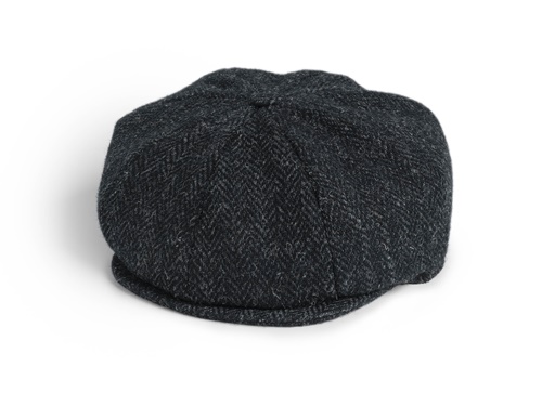Hanna Connery Tweed Cap, Harris Scottish Tweed Black & Charcoal Herringbone