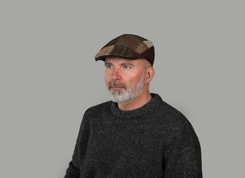 Tweed Patchwork Donegal Touring Hat by Hanna Hats in Ireland. This cap made by Hanna Hats is a