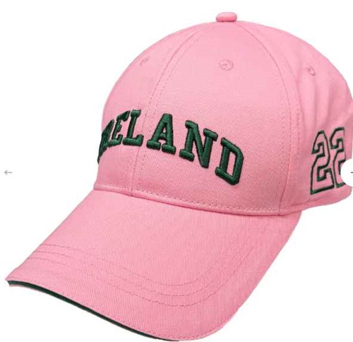 cap brings together soft pink tones with classic Irish green, creating a fresh and eye-catching