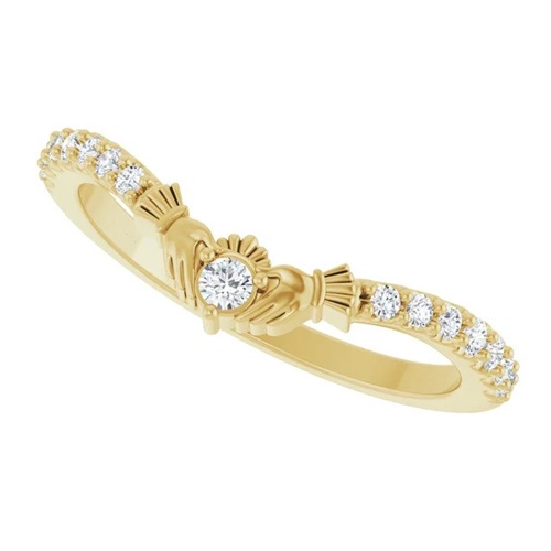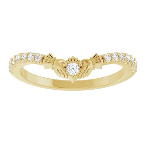 14K Yellow Gold and 1/5 CTW Lab Diamond Irish Claddagh Contour Wedding Band beautifully blends