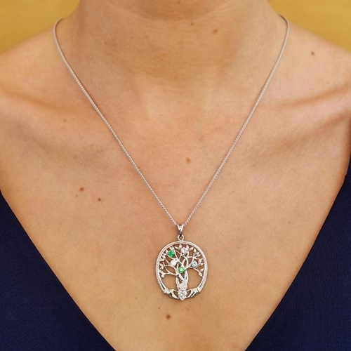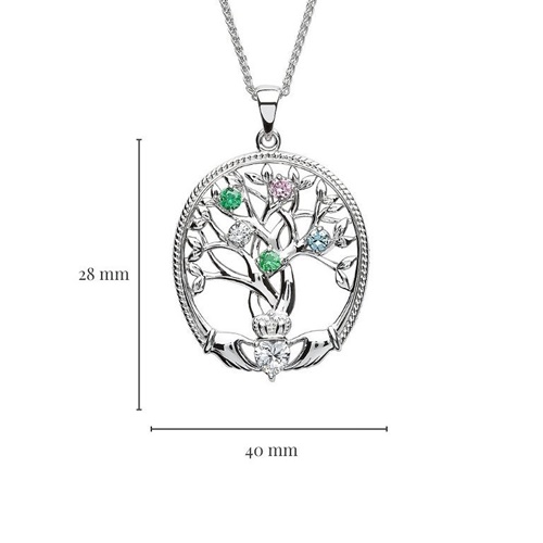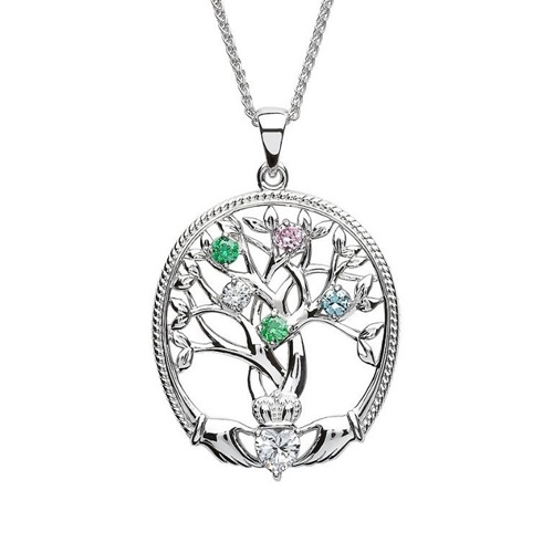Irish Family Claddagh Tree of Life Birthstone Pendant, 5 Stone