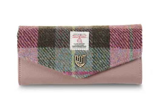 Introducing The Large Clasp Purse—a grander expression of style. Its outer layer, a fusion of Harris Tweed® and microfibre leather, is secured with a reliable metal popper fastening, revealing a capacious microfibre leather interior.