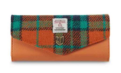 Introducing The Large Clasp Purse—a grander expression of style. Its outer layer, a fusion of Harris Tweed® and microfibre leather, is secured with a reliable metal popper fastening, revealing a capacious microfibre leather interior.