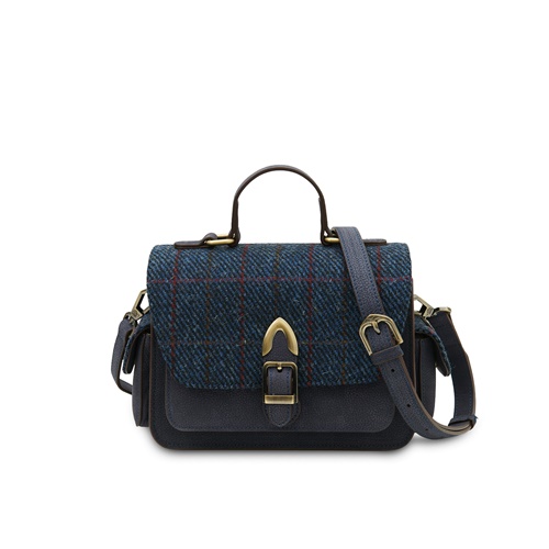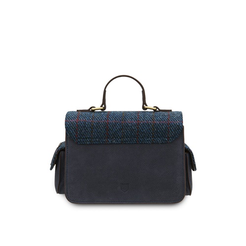 Islander Melrose Crossbody Genuine Leather Purse with HARRIS TWEED - Navy Overcheck