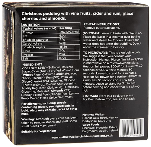 Matthew Walker has been making Christmas puddings since 1899. A moist Christmas Pudding, withjuicy sultanas, raisins, cider and rum.
