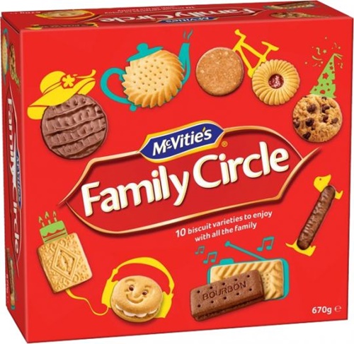 A large carton of McVitie's Crawford's Family Circle. An assortment of family favorite