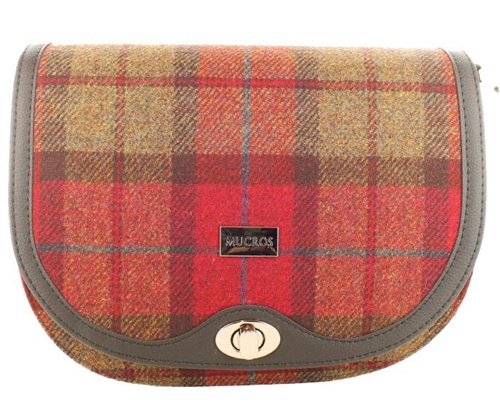 Mucros Weavers made this from 100% wool with nylon lining on the inside. The interior of this bag has both a zippered and two open compartments. The bag also features a detatchable leather strap and tassle accent.