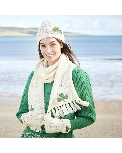 Patrick Francis Aran Knit Shamrock Gloves, Cream