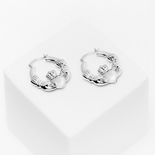 Solvar Silver Claddagh Creole Medium Earrings are a bold and elegant celebration of Irish