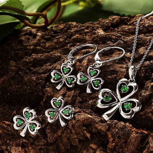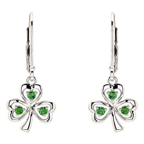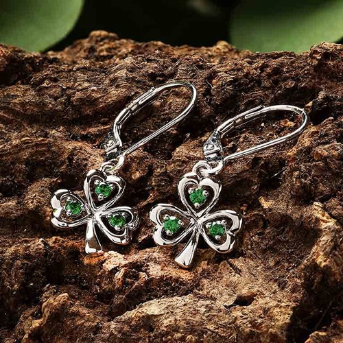 Shanore’s Sterling Silver Emerald Cubic Zirconia Drop Shamrock Earrings are a charming pair.
