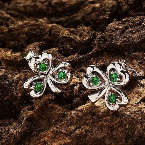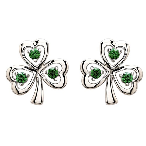 Shanore's Sterling Silver Emerald Cubic Zirconia Stud Shamrock Earrings are a dainty pair for