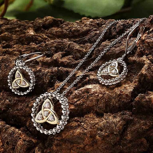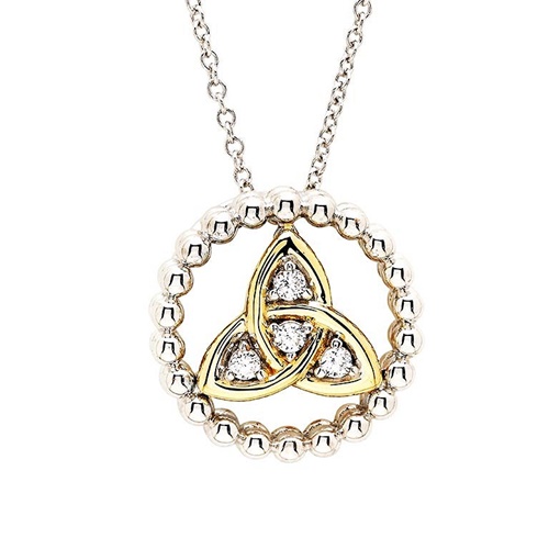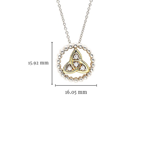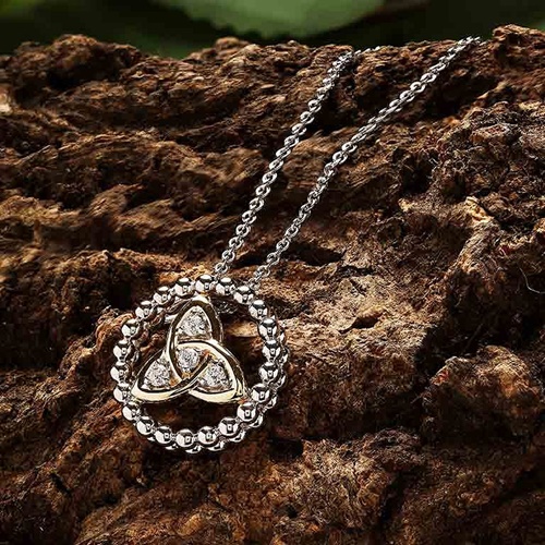 Shanore’s Sterling Silver White CZ Trinity Knot Necklace with 1M Gold Plated Detail is a
