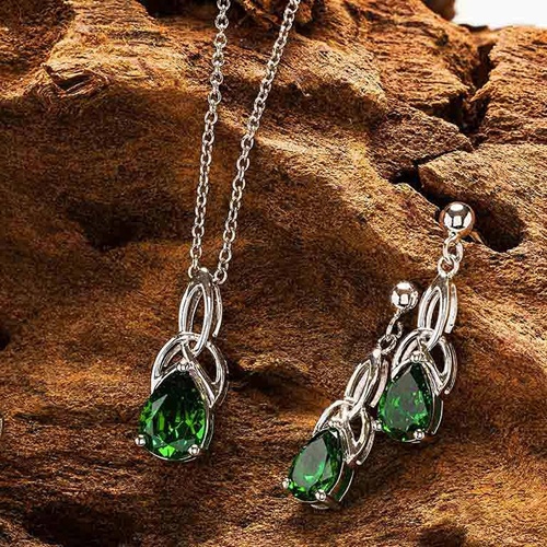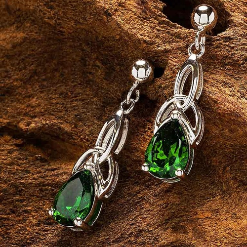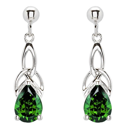 Sterling Silver Emerald Trinity Knot Earrings with Cubic Zirconia