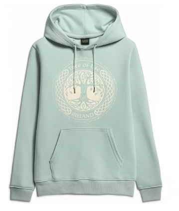 Tree of Life Sweatshirt in Mint Green. Hoodded with drawstrings. This sweatshirtis a blend of cotton and polyester
