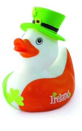 Tri-colored rubber duck, with shamrock on chest and leprachaun hat! Perfect for bath time or as a gift to show off your Irish Pride!